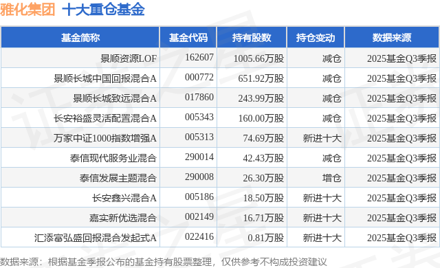 根据2025基金Q3季报公募基金重仓股数据,重仓该股的公募基金共10家,其中持有数量最多的公募基金为景顺长城基金的景顺资源LOF。景顺资源LOF目前规模为17.52亿元,最新净值0.539(12月26日),较上一交易日上涨0.56%,近一年上涨25.64%。该公募基金现任基金经理为韩。韩在任的基金产品包括:景顺长城中国回报混合A,管理时间为2019年10月10日至今,期间收益率为64.41%;景顺长城安鑫回报一年持有期混合A,管理时间为2020年7月10日至今,期间收益率为9.13%;景顺长城致远混合A,管理时间为2023年2月28日至今,期间收益率为-11.54%。